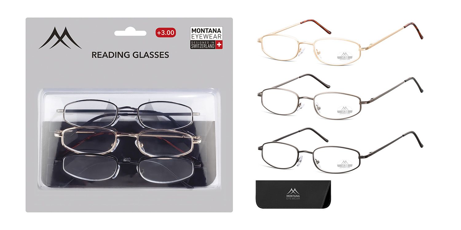 3 pack metal reading glasses - Aspheric and scratch free lenses - Soft pouch included
