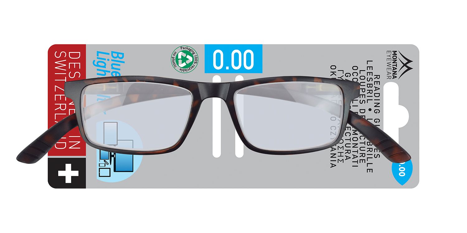 Montana neck hanging reading glasses - Aspheric and scratch free lenses with blue light filter - including hanging card and a soft pouch