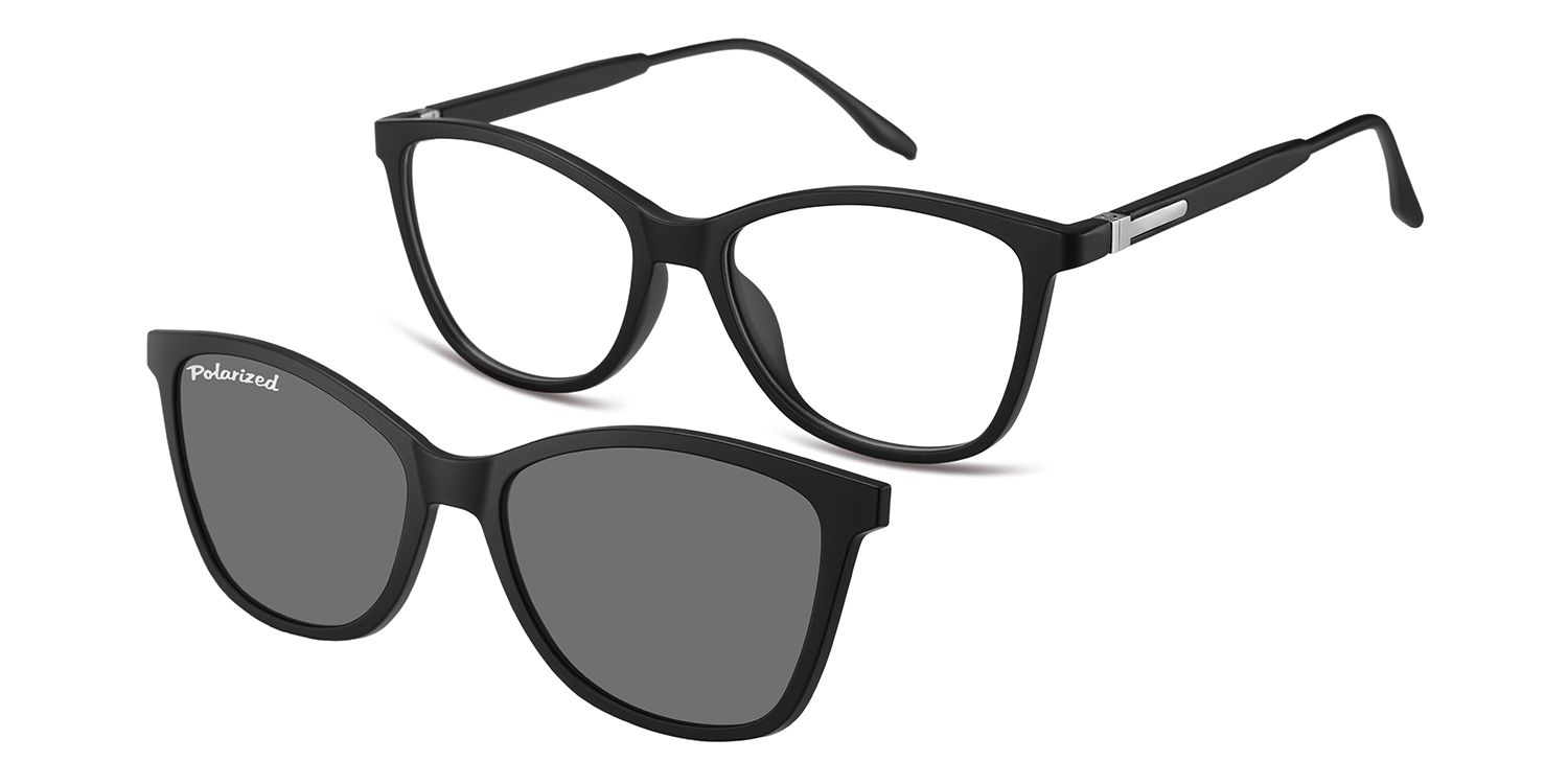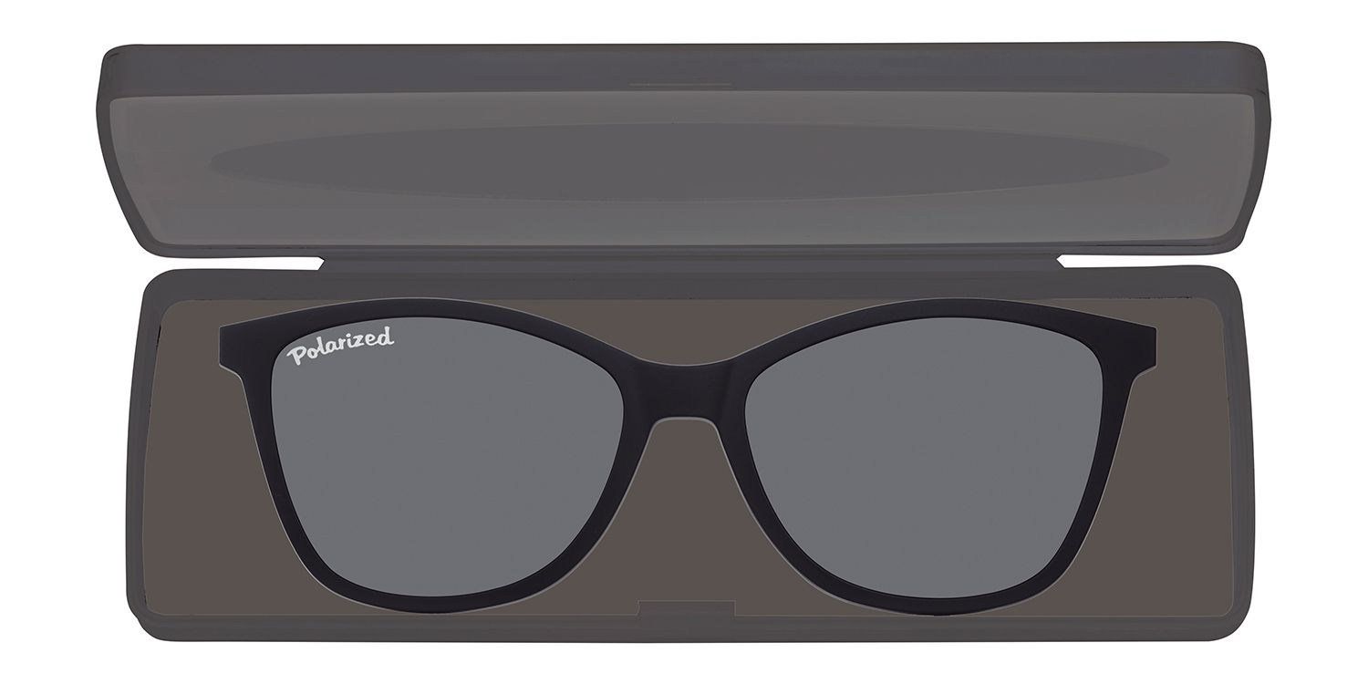 Clip-on with magnetic mounting and polarized smoke sun lenses, suitable for frame M-TRC295, including hard case. Frame and clip-on can be ordered separately.