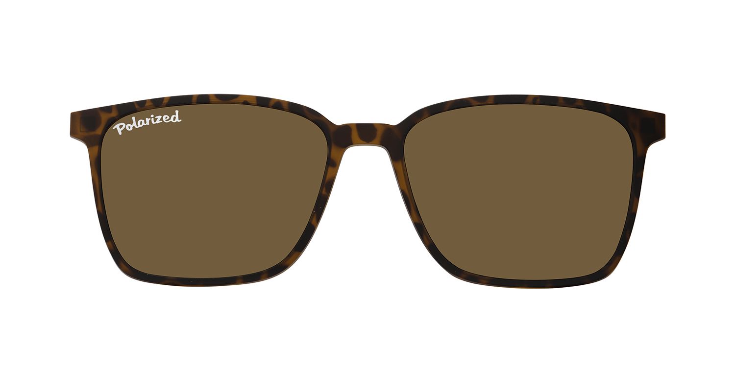 Clip-on with magnetic mounting and polarized brown sun lenses, suitable for frame M-TRC296A, including hard case. Frame and clip-on can be ordered separately.