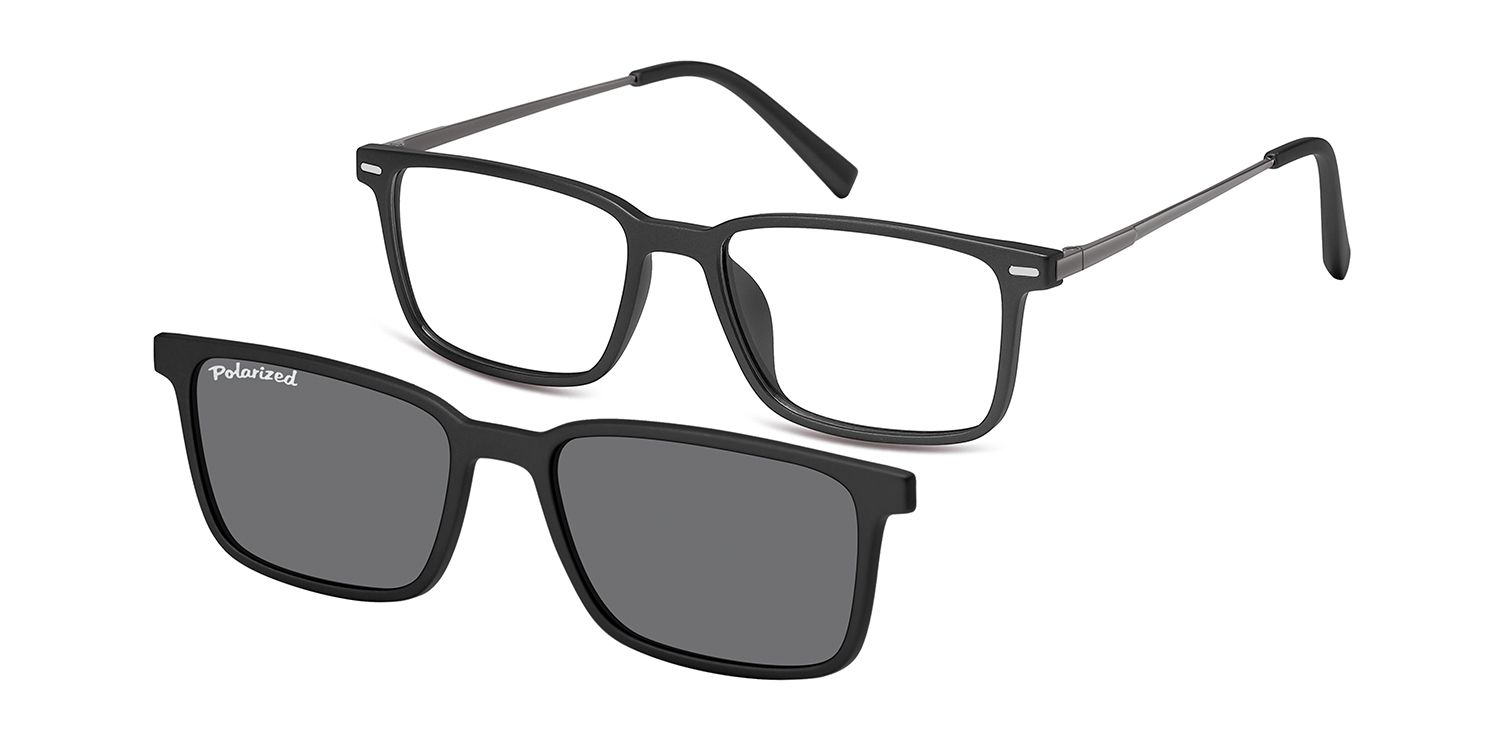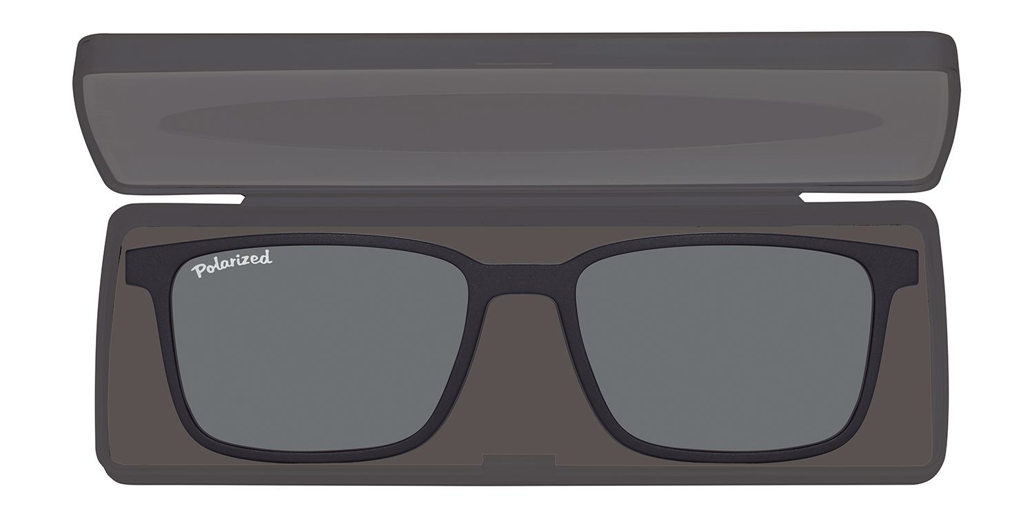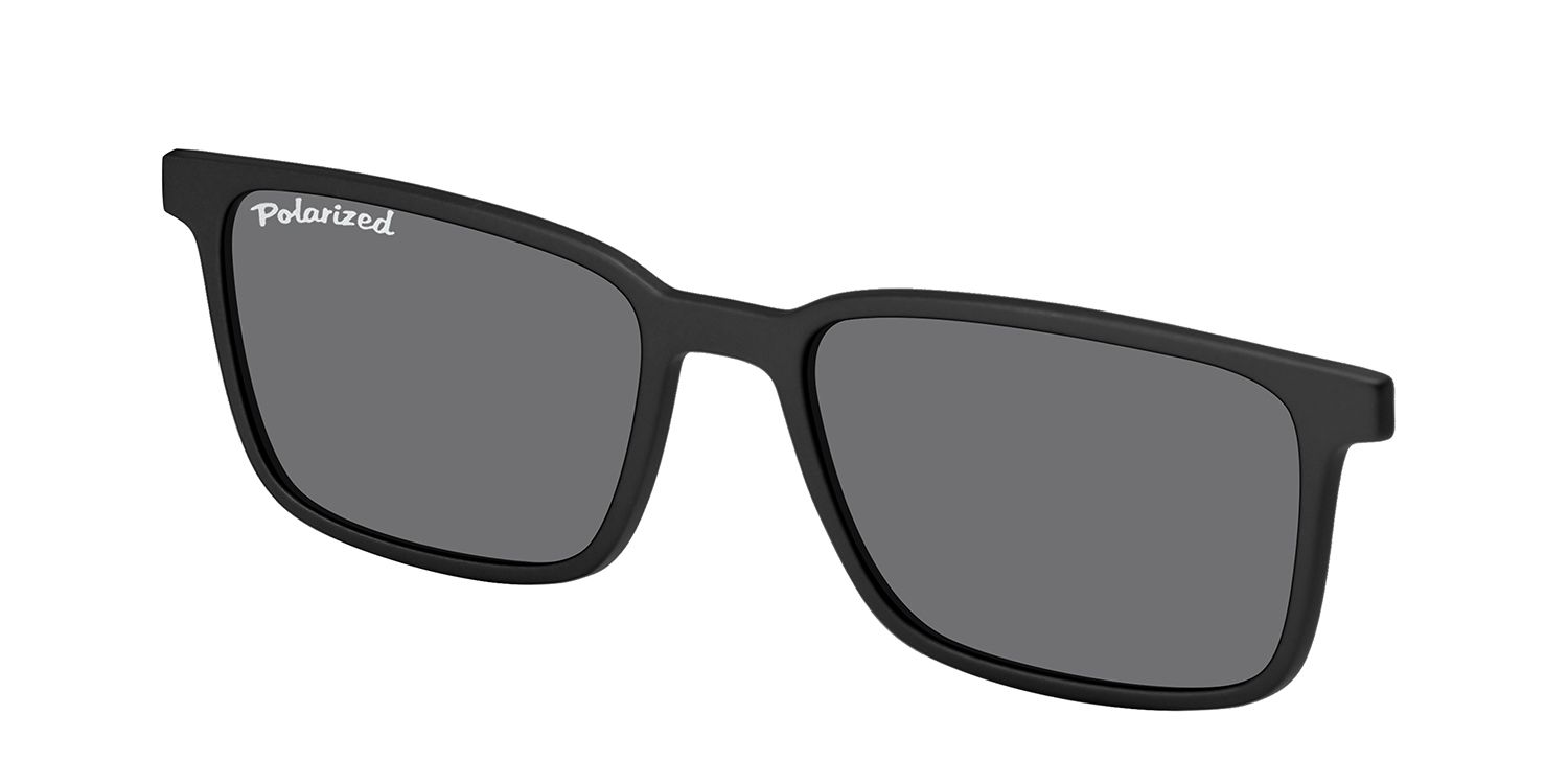 Clip-on with magnetic mounting and polarized smoke sun lenses, suitable for frame M-TRC298, including hard case. Frame and clip-on can be ordered separately.