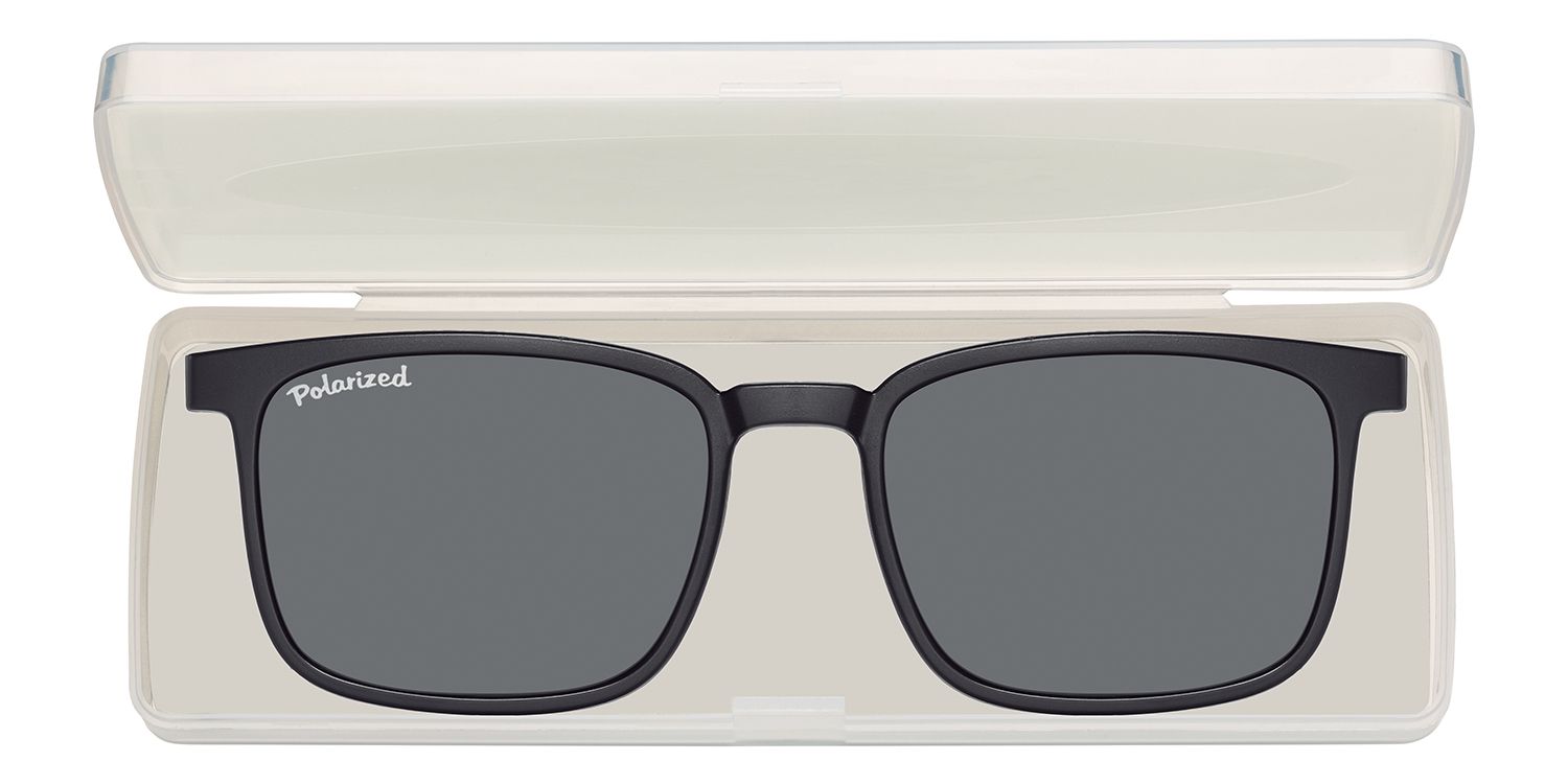 Clip-on with magnetic mounting and polarized sun lenses, suitable for frame MC97C, including hard case. Frame and clip-on can be ordered separately.