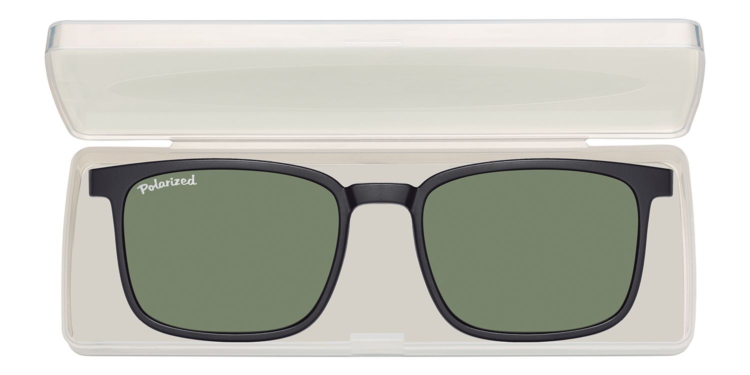 Clip-on with magnetic mounting and polarized sun lenses, suitable for frame MC97C, including hard case. Frame and clip-on can be ordered separately.