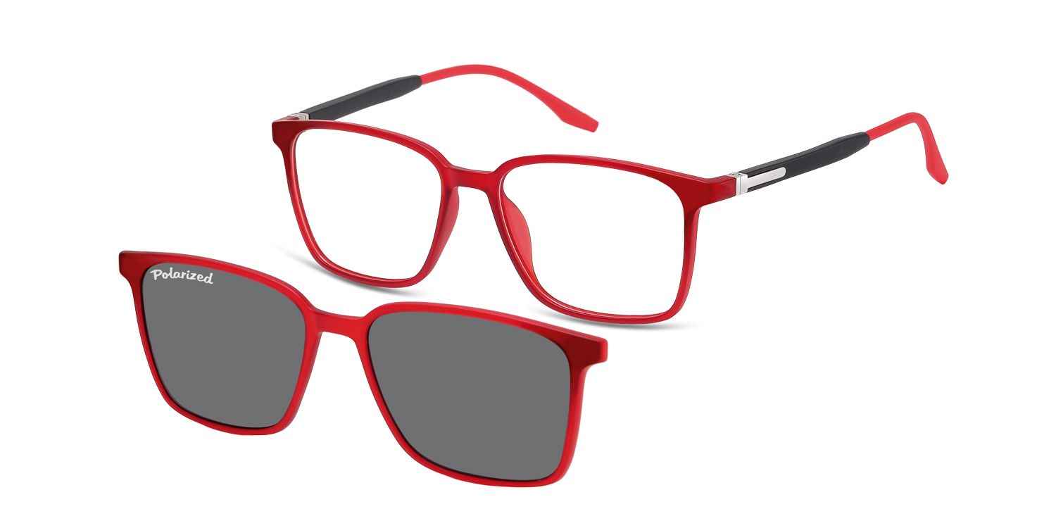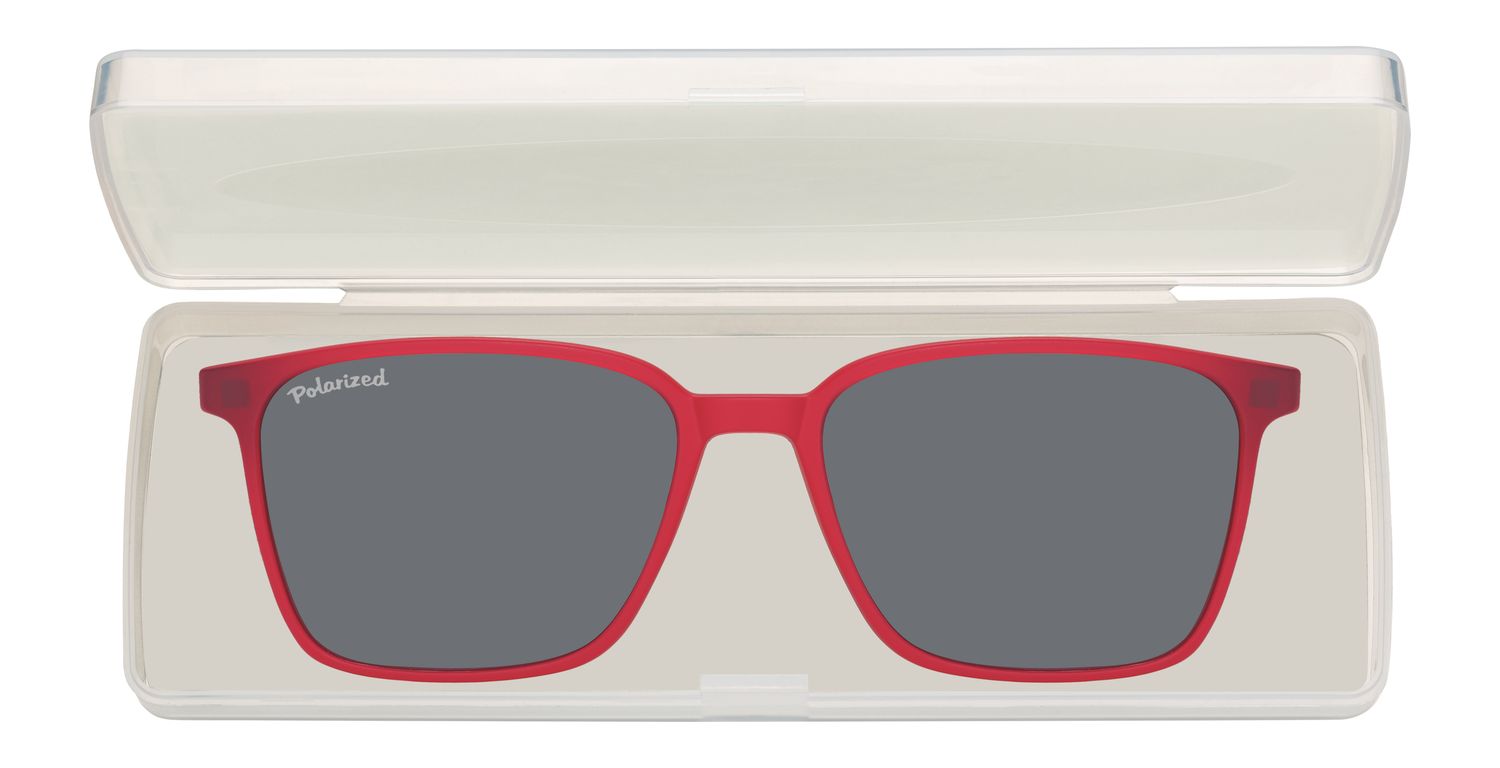 Clip-on with magnetic mounting and polarized smoke sun lenses, suitable for frame TRC-187C, including hard case. Frame and clip-on can be ordered separately.
