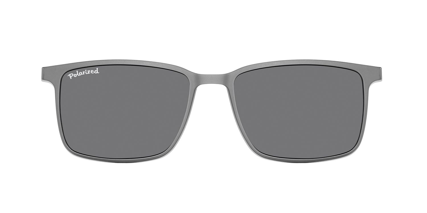 Clip-on with magnetic mounting and polarized smoke sun lenses, suitable for frame TRC-191C, including hard case. Frame and clip-on can be ordered separately.