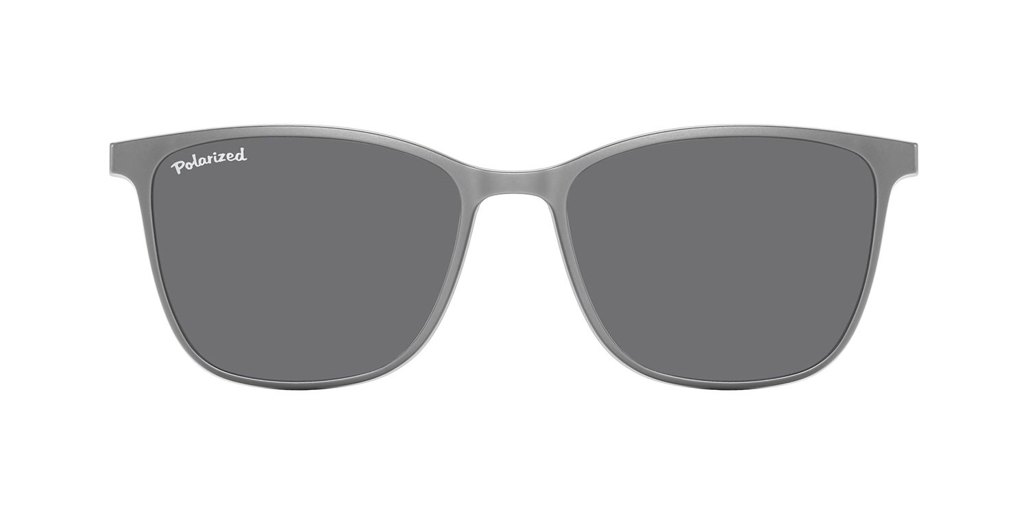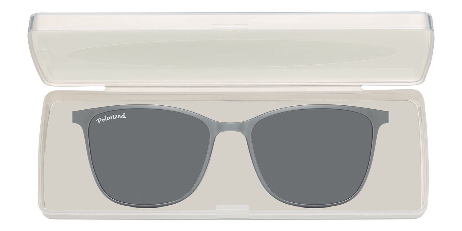 Clip-on with magnetic mounting and polarized smoke sun lenses, suitable for frame TRC-193C, including hard case. Frame and clip-on can be ordered separately.