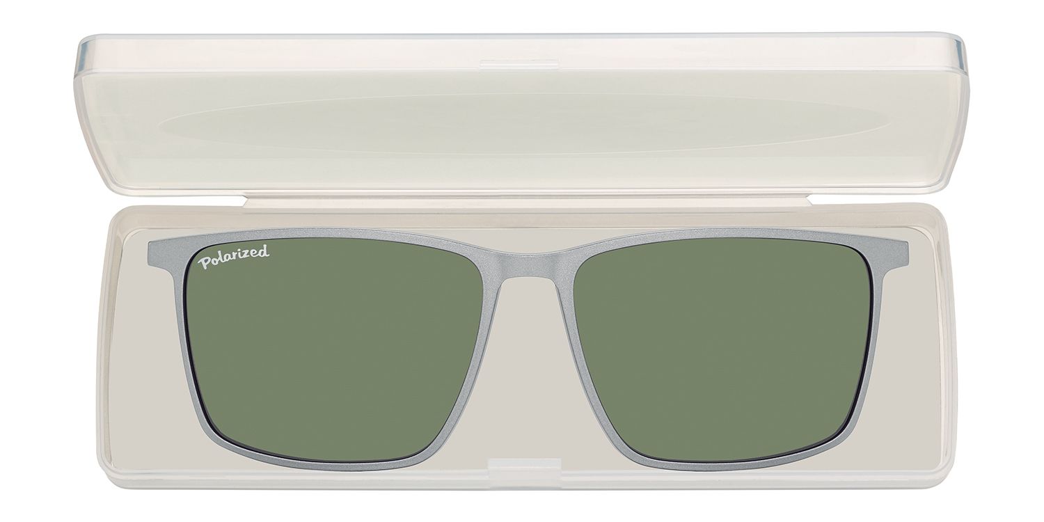 Clip-on with magnetic mounting and polarized G15 sun lenses, suitable for frame TRC-196C, including hard case. Frame and clip-on can be ordered separately.