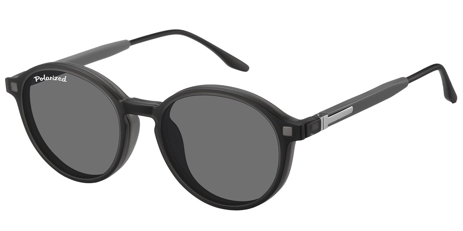Optical frame in matt grey finishing, suitable for magnetic clip-on in identical colour, with polarized sun lenses.