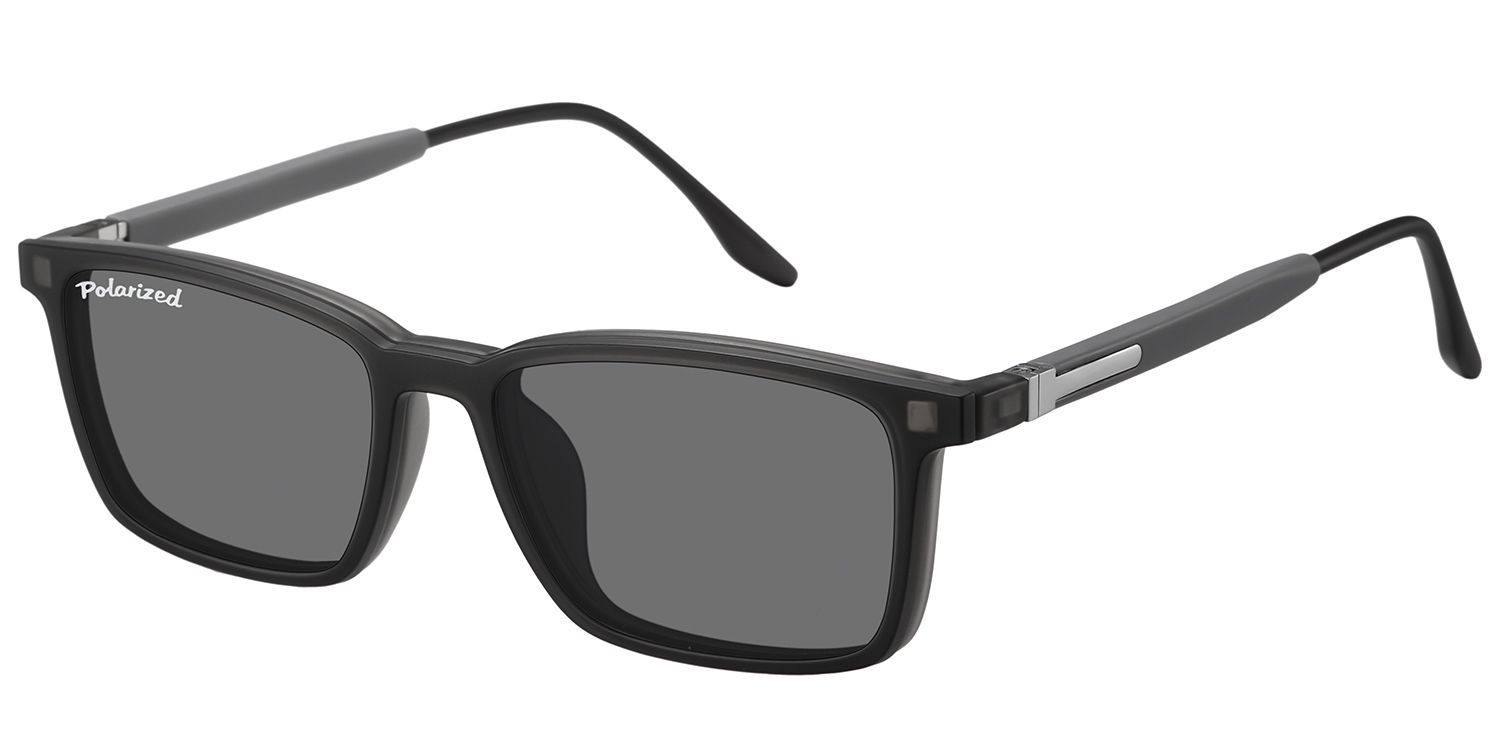 Optical frame in matt grey finishing, suitable for magnetic clip-on in identical colour, with polarized sun lenses.