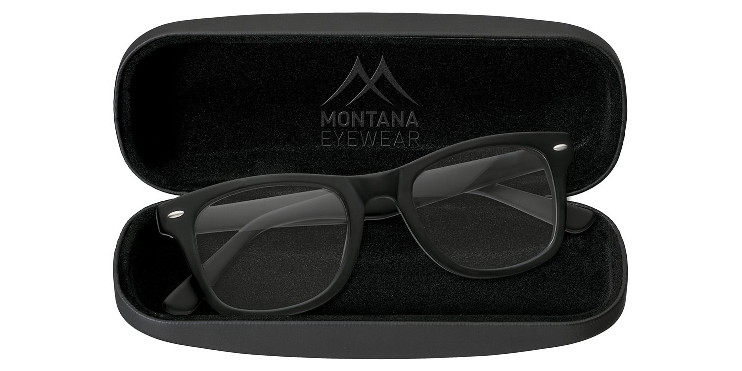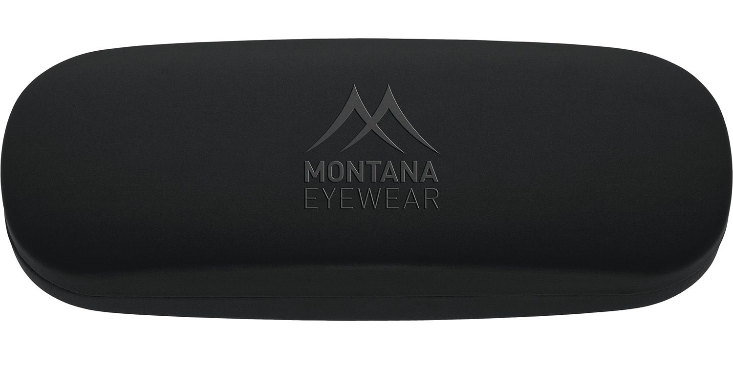Montana Eyewear metal hard case with soft PU coating and debossed logo, including a microfibre cloth - order per dozen - price per piece.