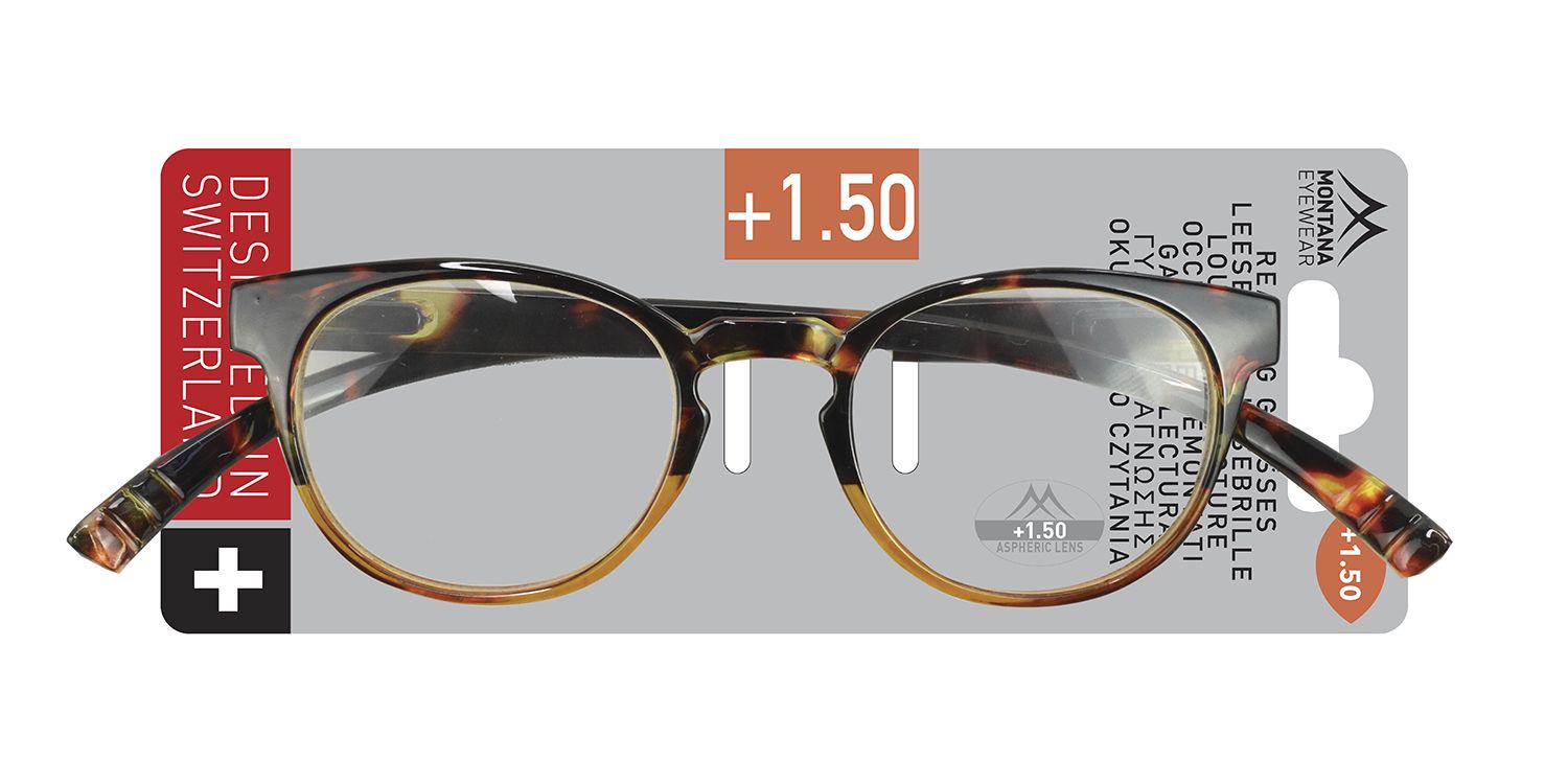 Montana neck hanging reading glasses including hanging card and a soft pouch - Aspheric and scratch free lenses