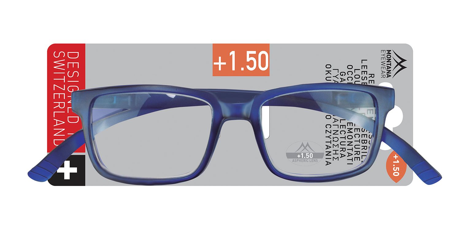 Montana neck hanging reading glasses - Aspheric and scratch free lenses - including hanging card and a soft pouch