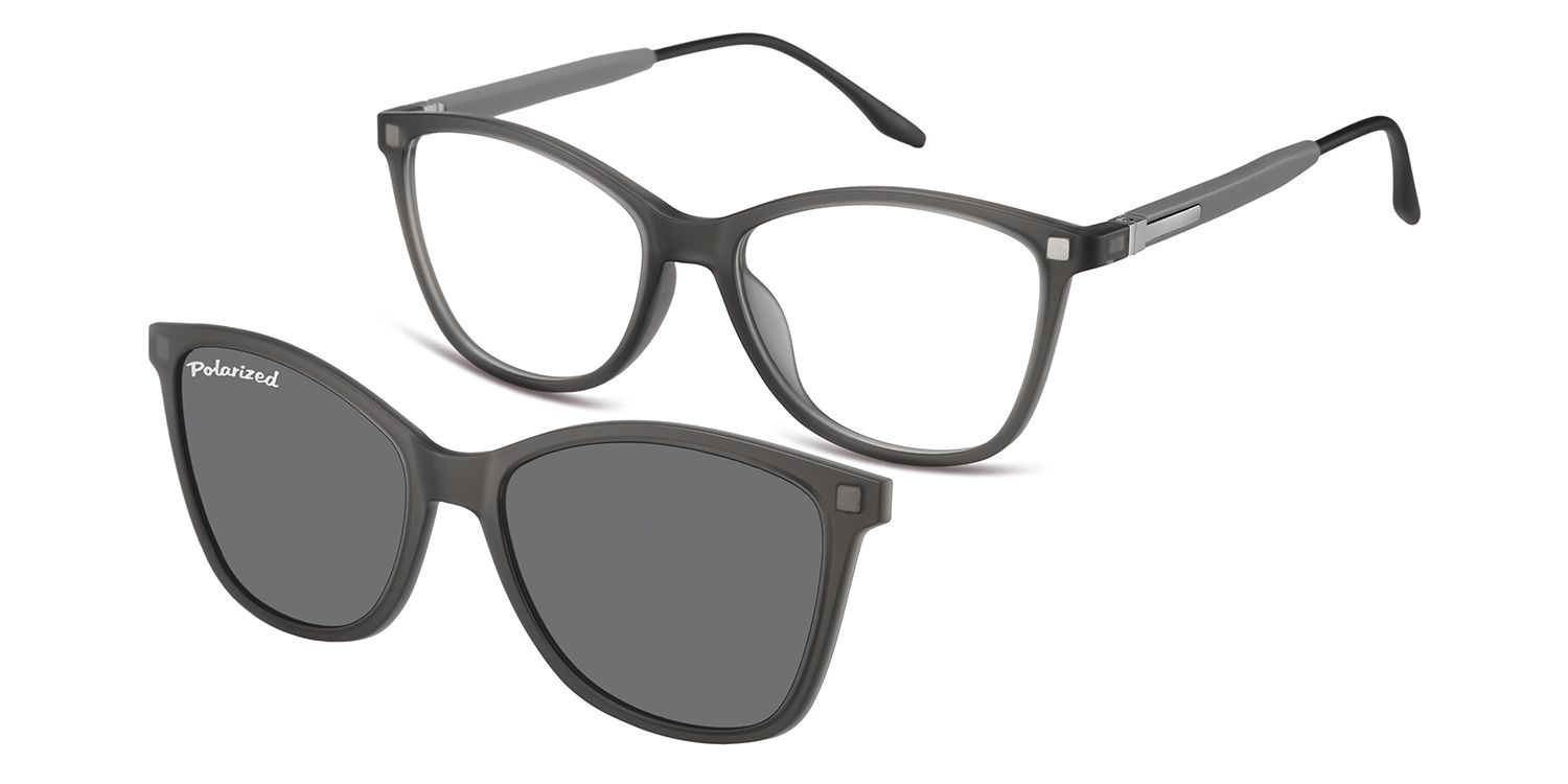 Optical frame in matt grey finishing, suitable for magnetic clip-on in identical colour, with polarized sun lenses.