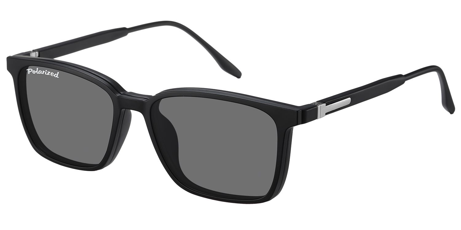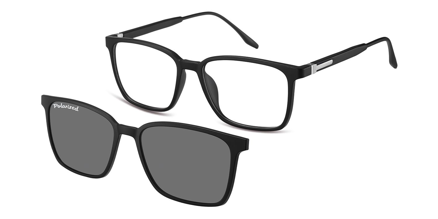 Optical frame in matt black finishing, suitable for magnetic clip-on in identical colour, with polarized sun lenses.
