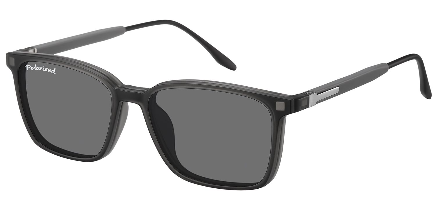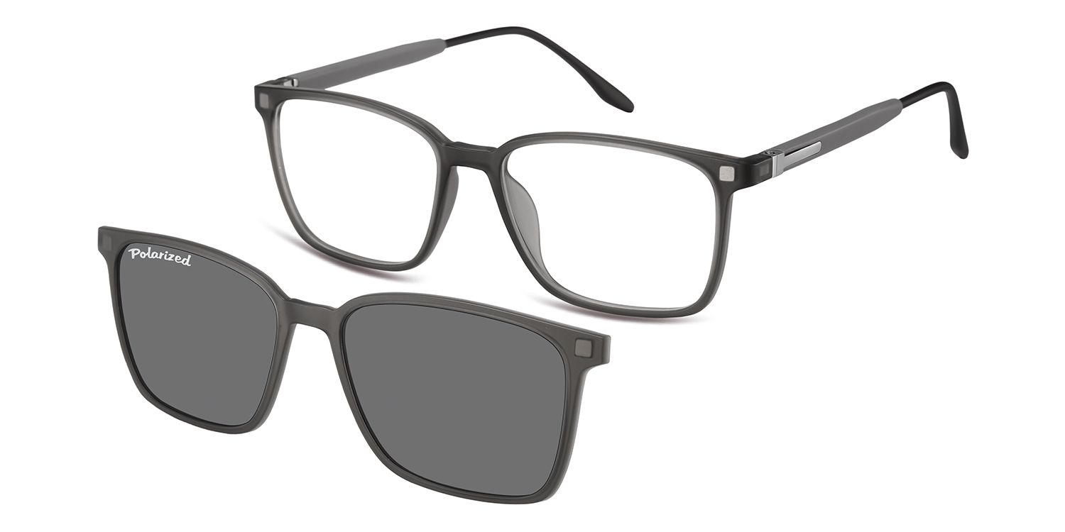 Optical frame in matt grey finishing, suitable for magnetic clip-on in identical colour, with polarized sun lenses.
