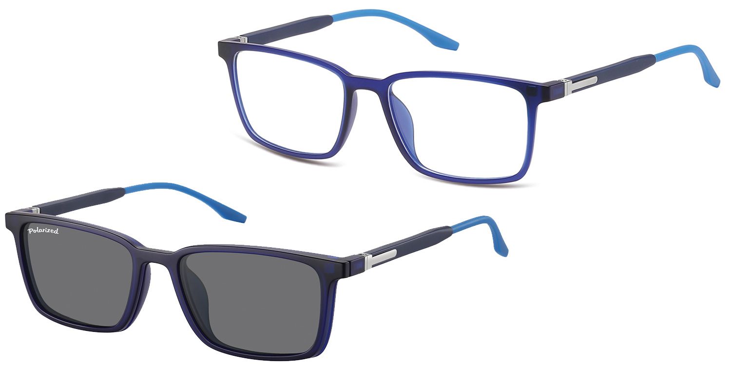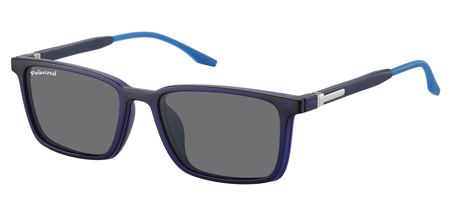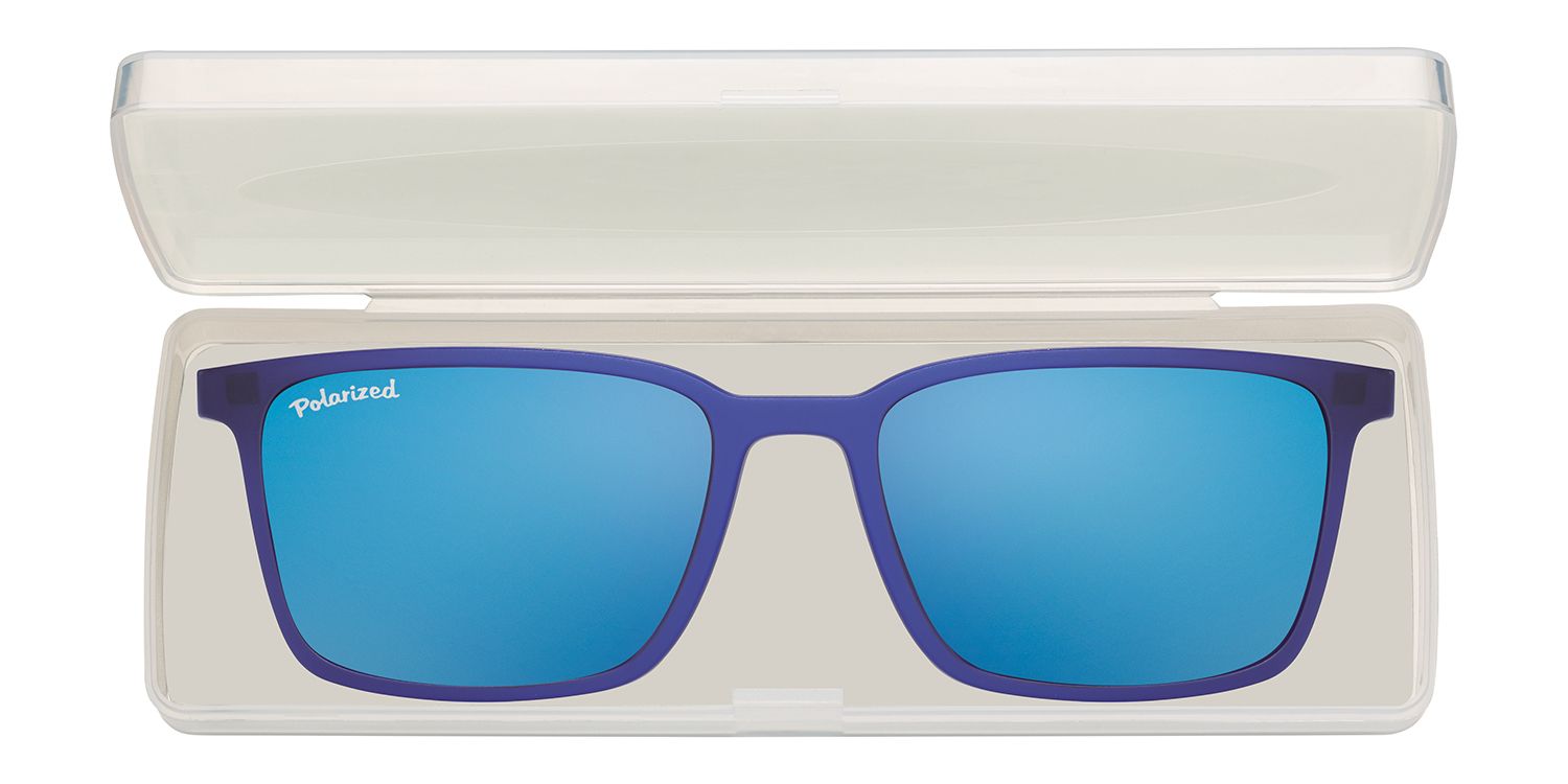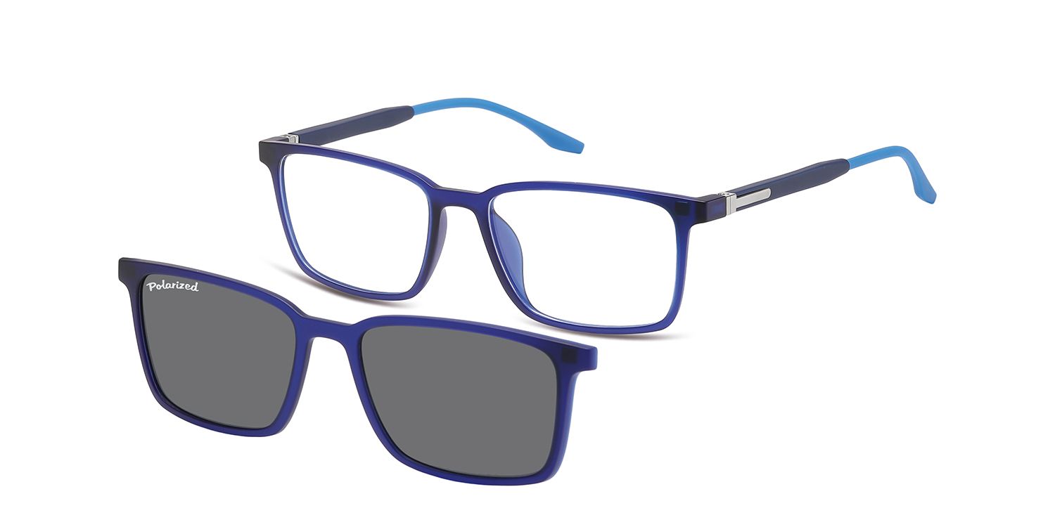 Optical frame in matt blue finishing, suitable for magnetic clip-on in identical colour, with polarized sun lenses.