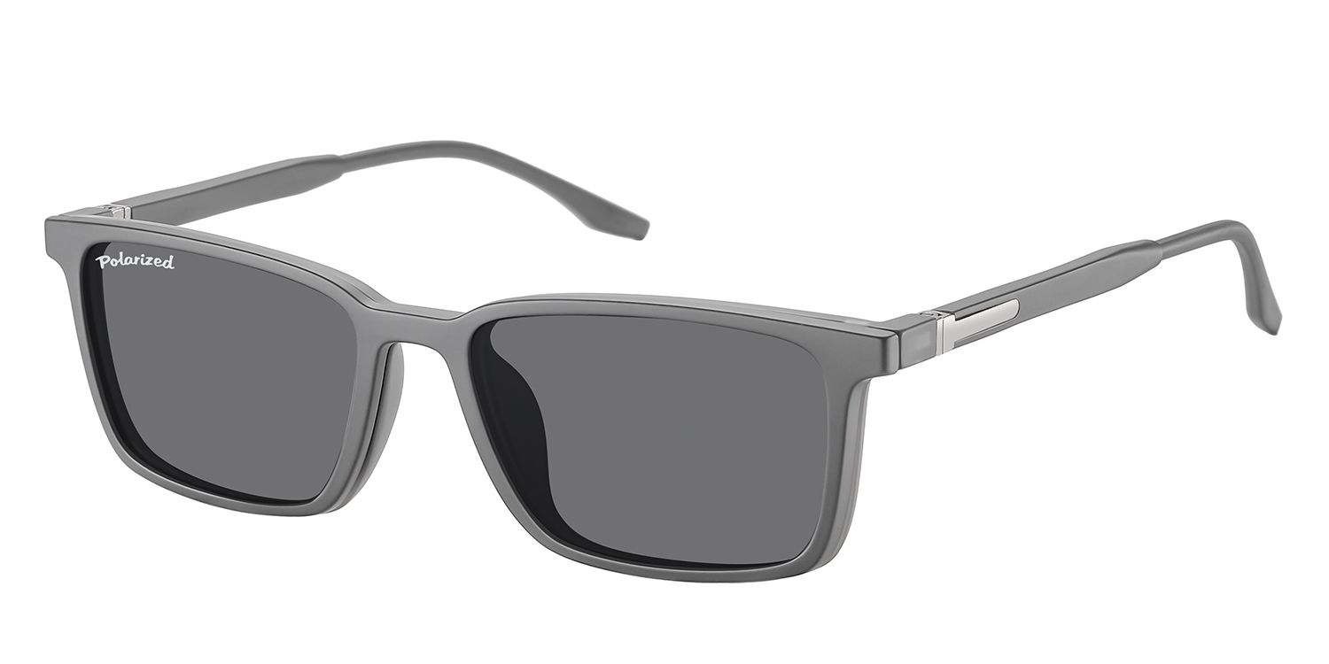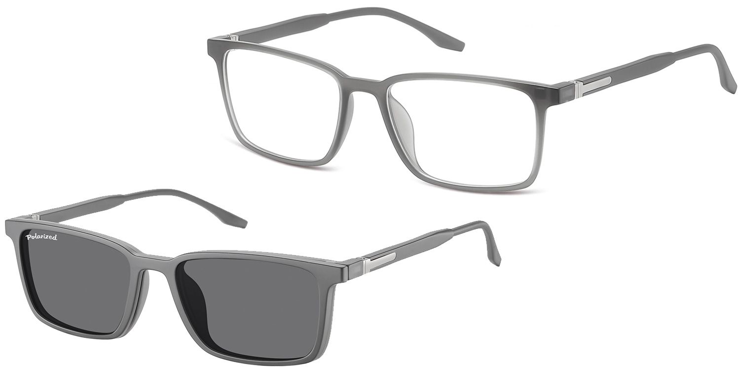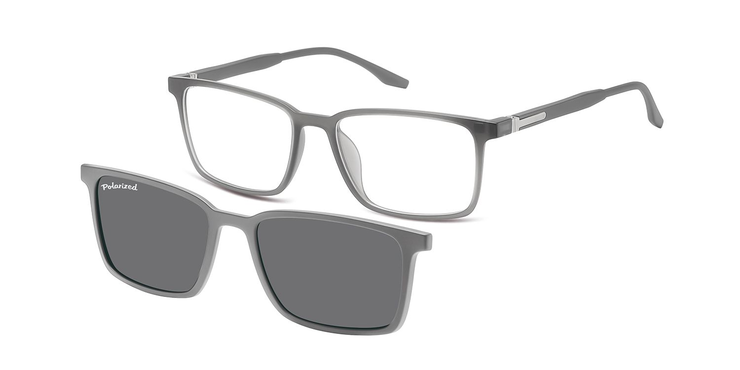 Optical frame in matt grey finishing, suitable for magnetic clip-on in identical colour, with polarized sun lenses.