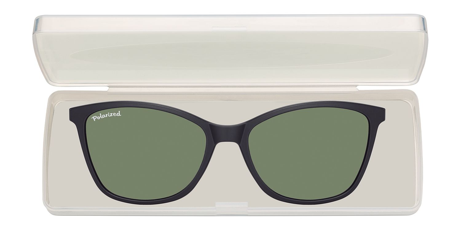 Optical frame in matt black finishing, suitable for magnetic clip-on in identical colour, with polarized sun lenses.
