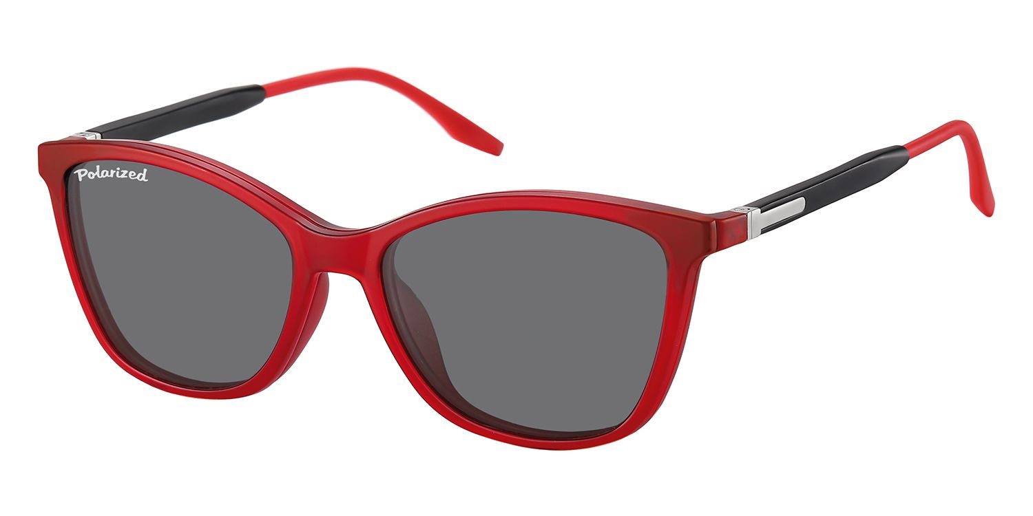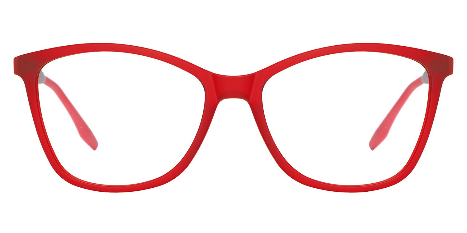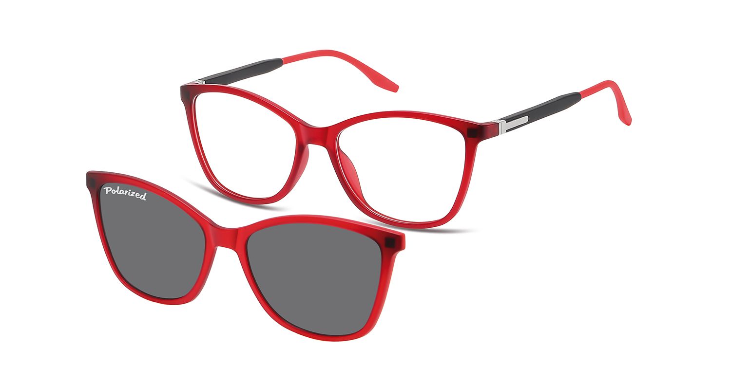 Optical frame in matt red finishing, suitable for magnetic clip-on in identical colour, with polarized sun lenses.