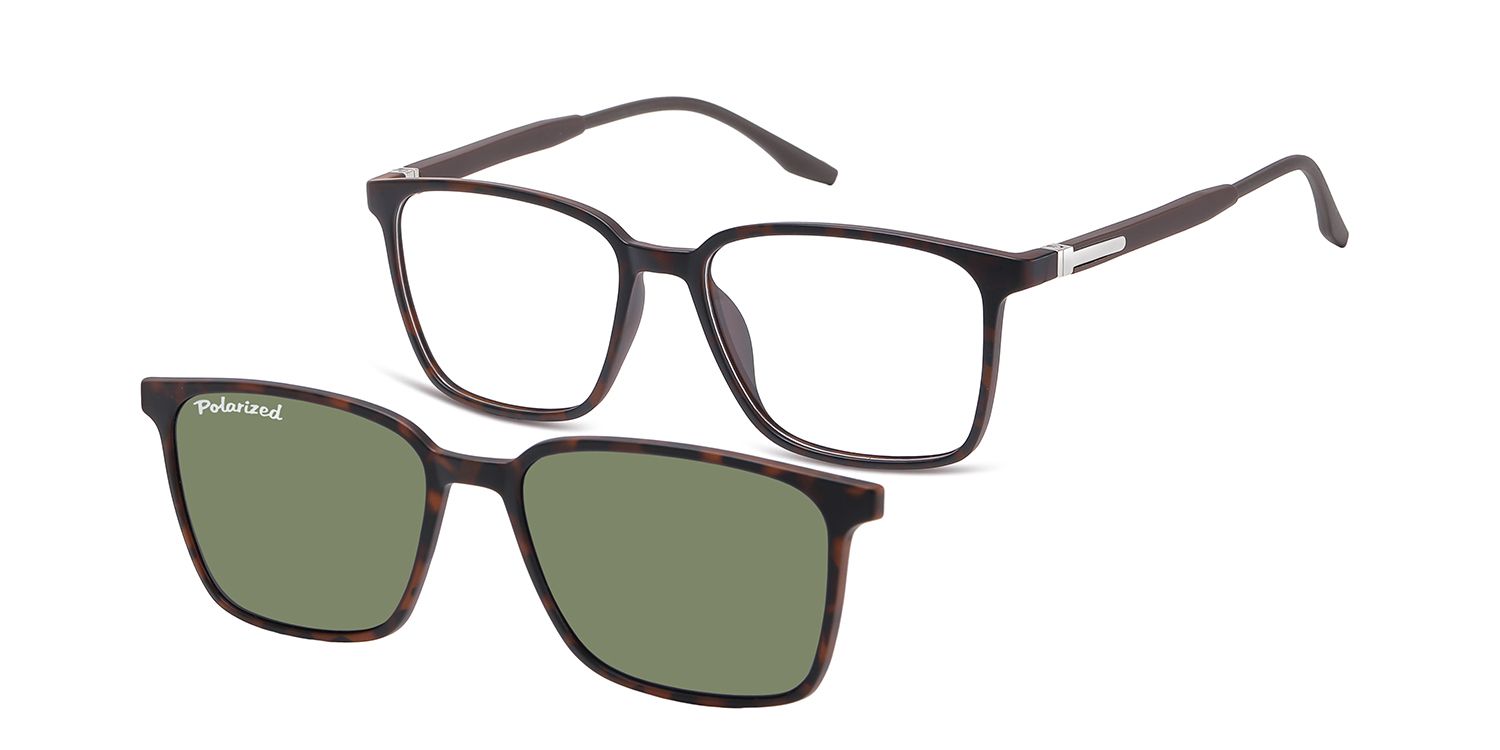Optical frame in matt turtle finishing, suitable for magnetic clip-on in identical colour, with polarized sun lenses.