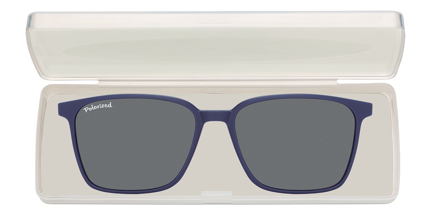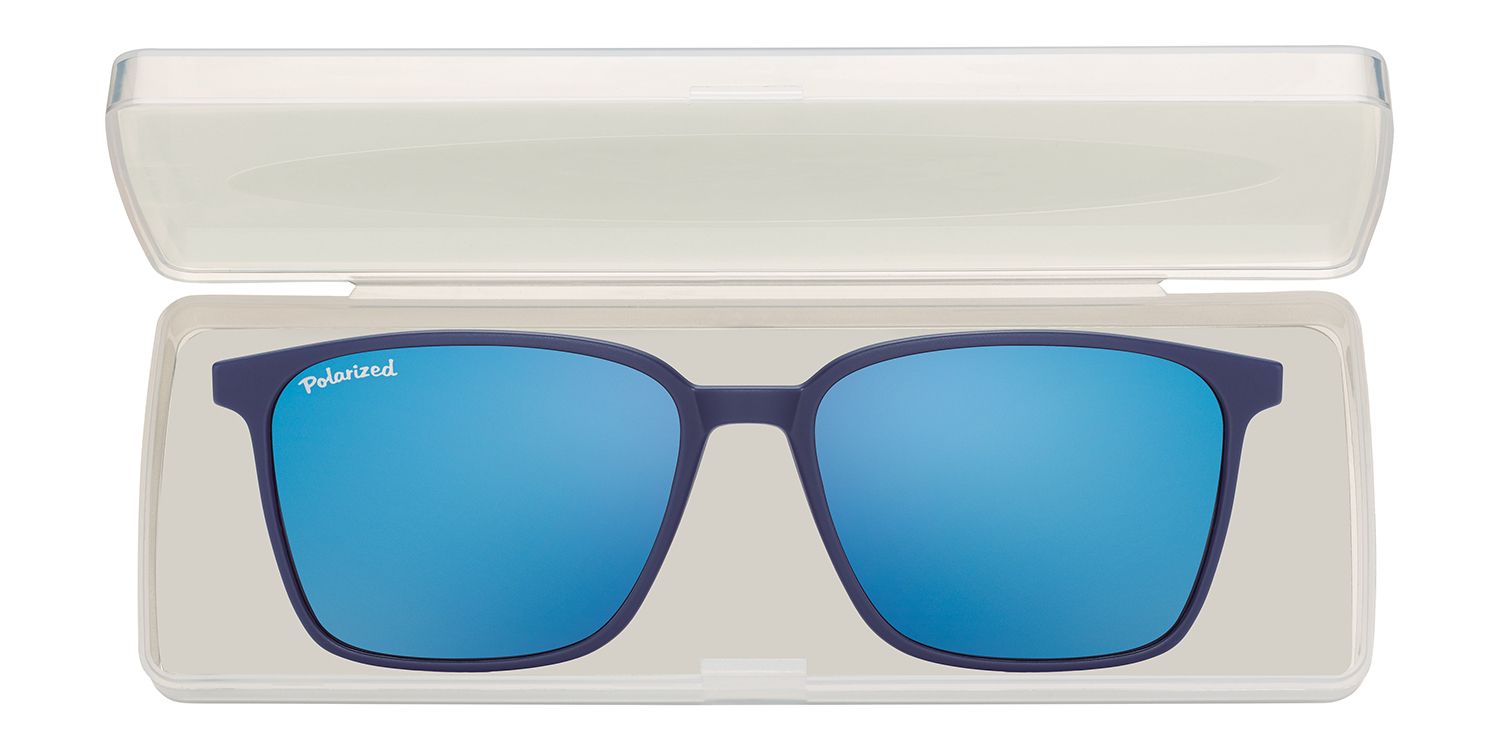 Optical frame in matt blue finishing, suitable for magnetic clip-on in identical colour, with polarized sun lenses.
