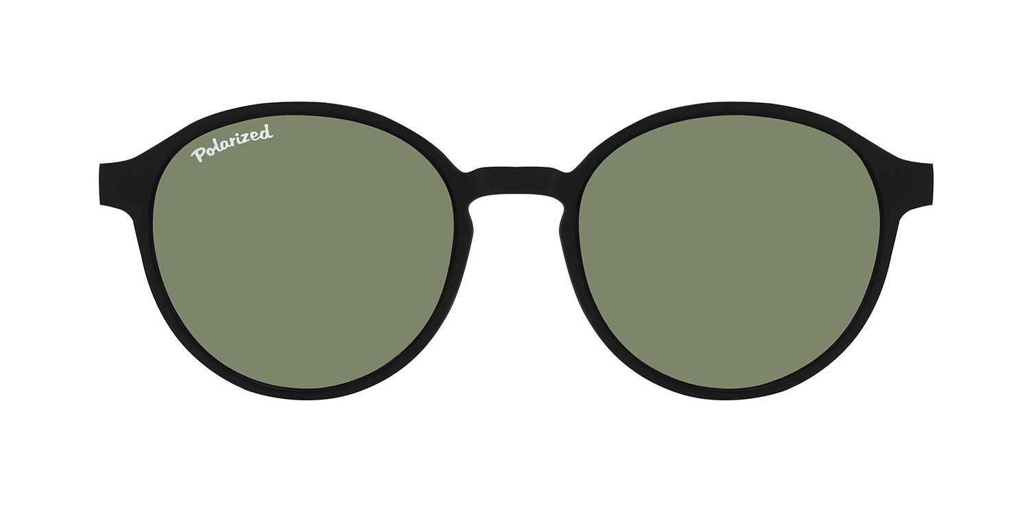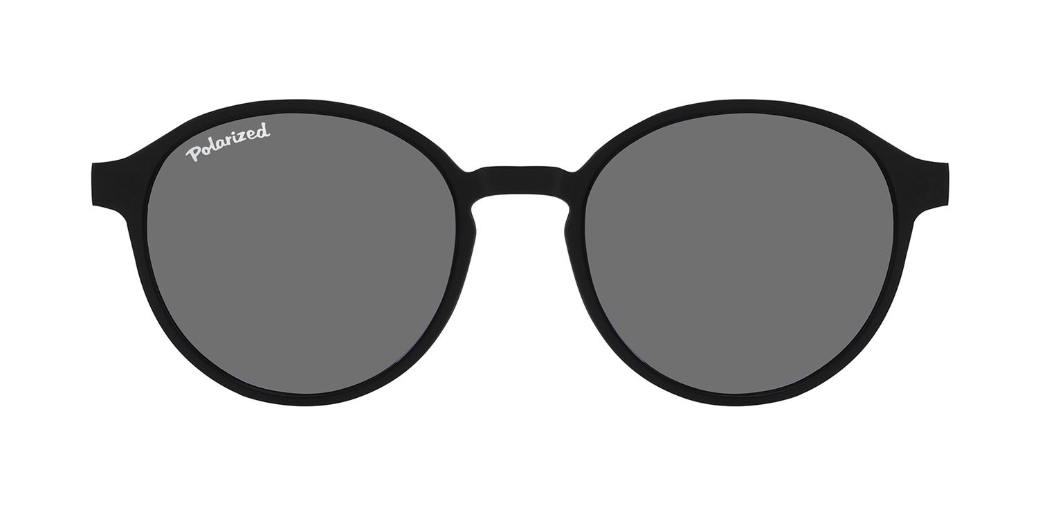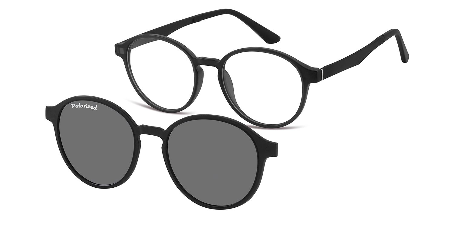 Optical frame in matt black finishing, suitable for magnetic clip-on in identical colour, with polarized sun lenses.