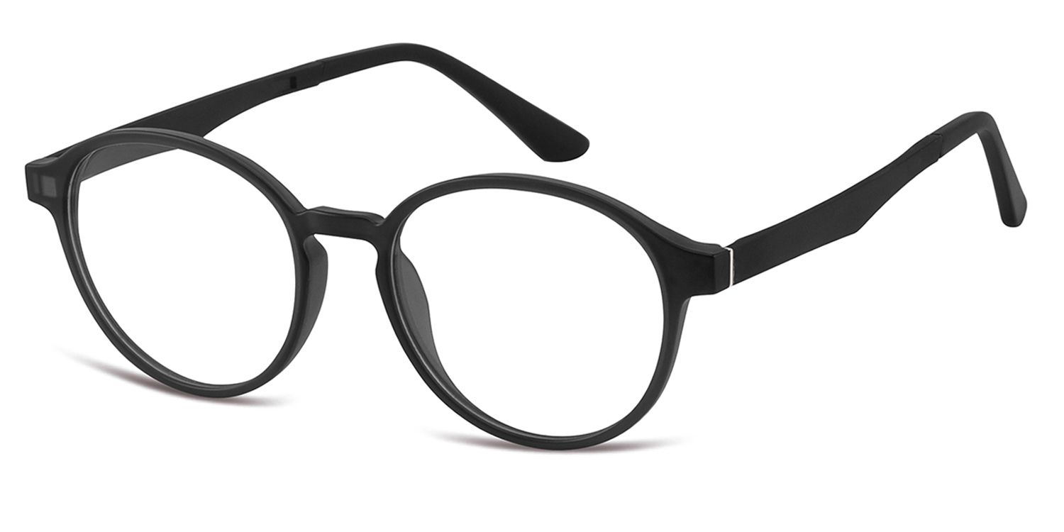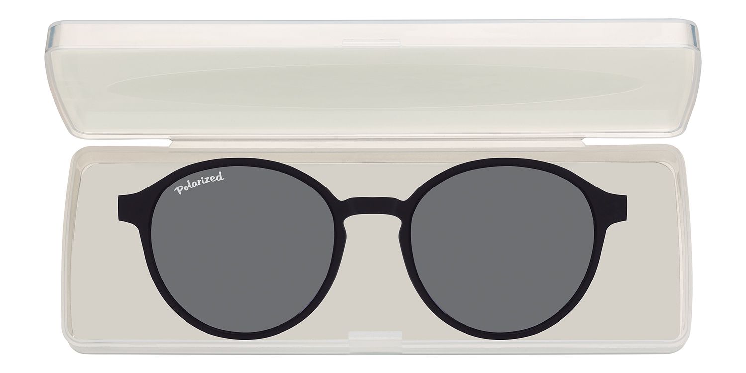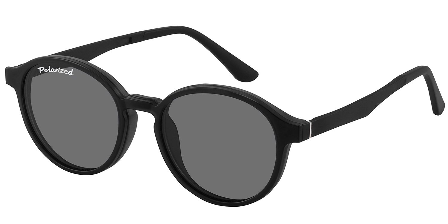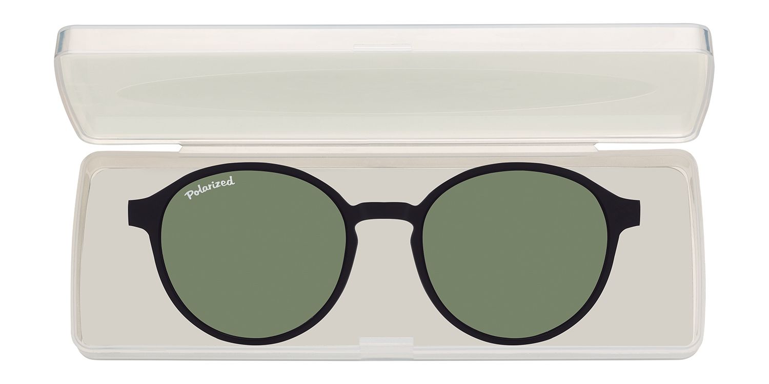 Optical frame in matt black finishing, suitable for magnetic clip-on in identical colour, with polarized sun lenses.