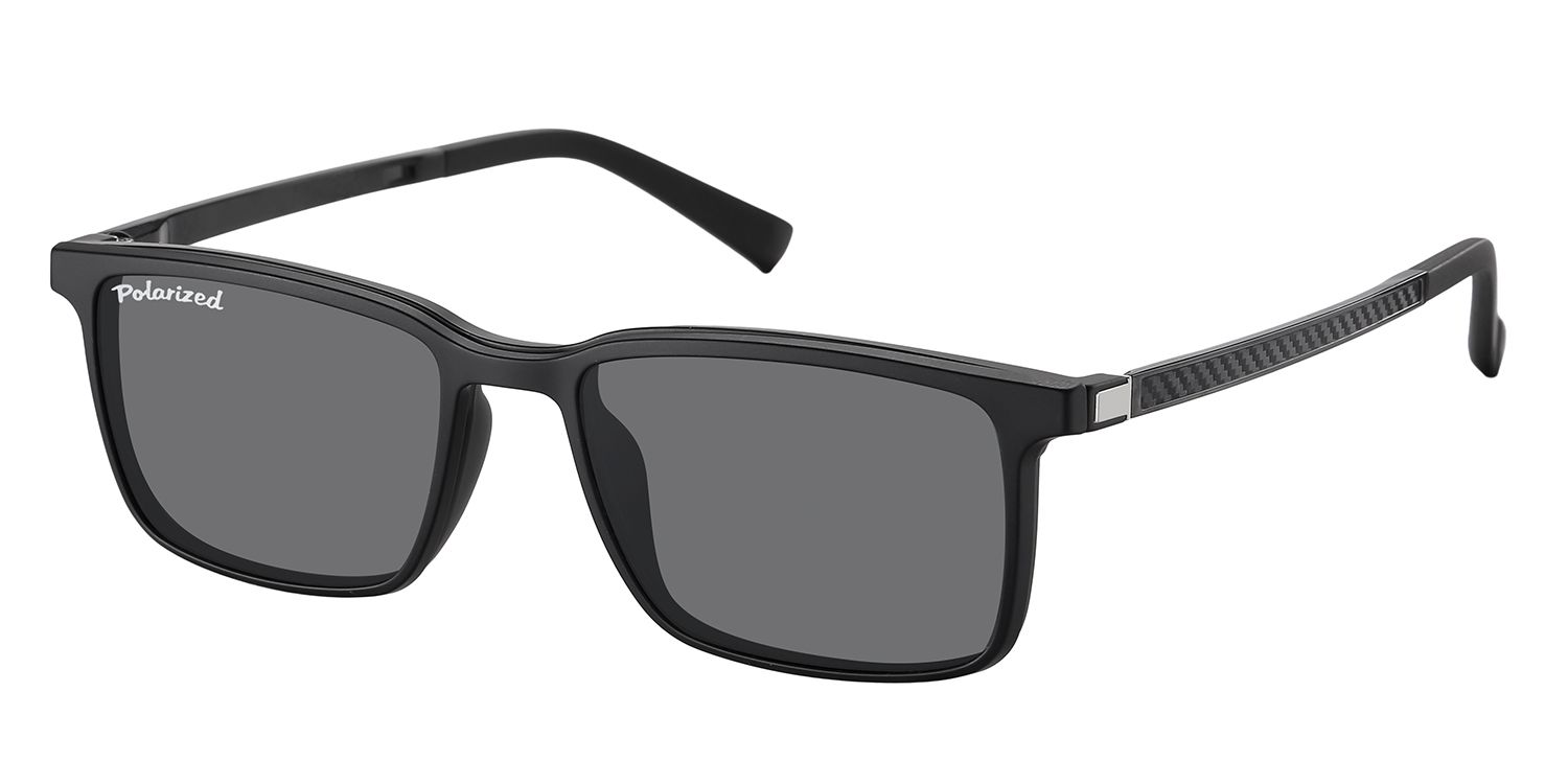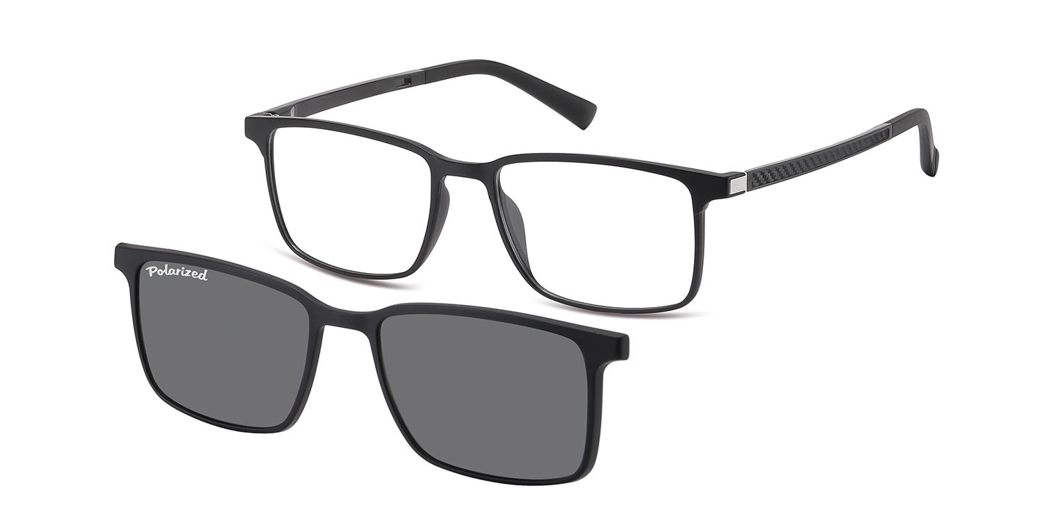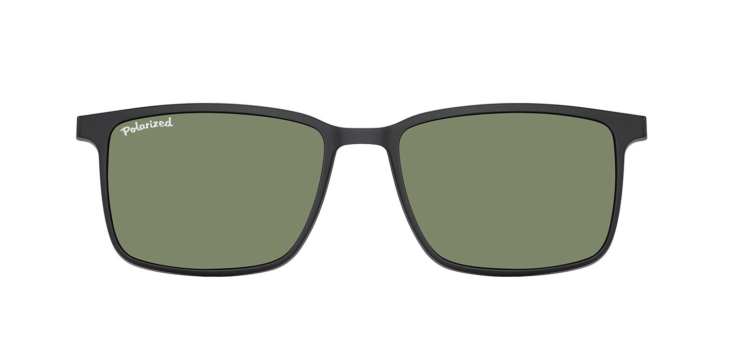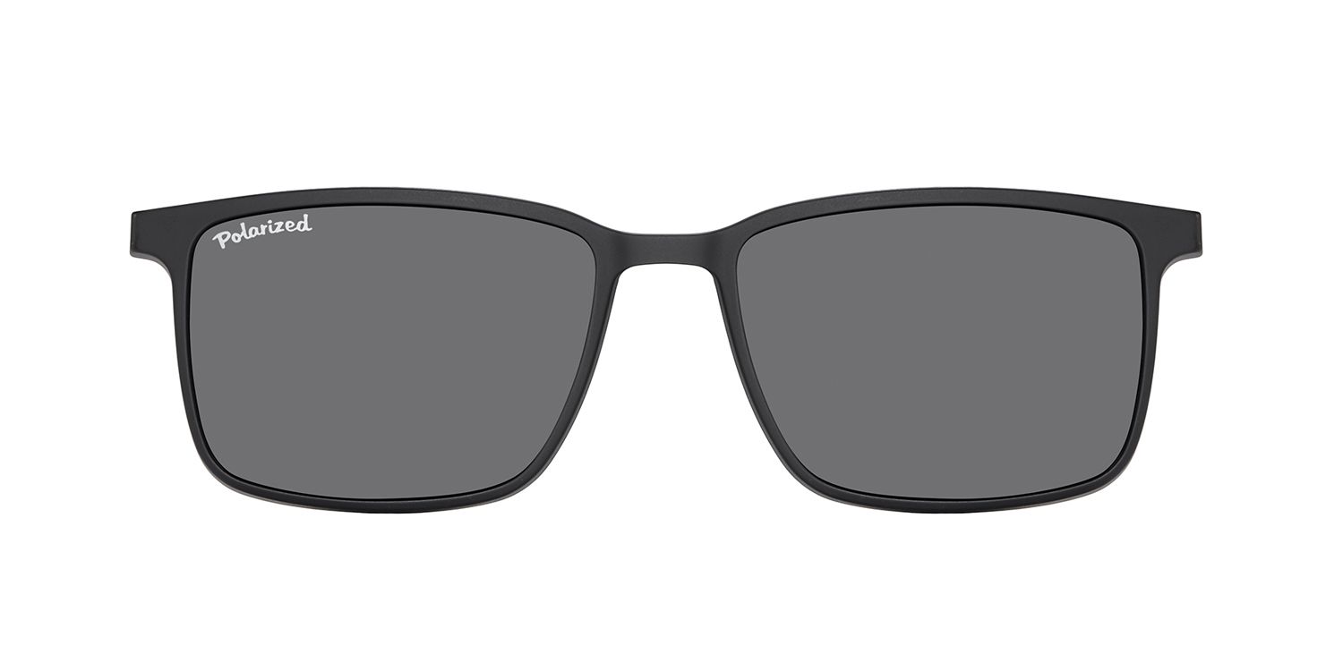 Optical frame in matt black finishing, suitable for magnetic clip-on in identical colour, with polarized sun lenses.