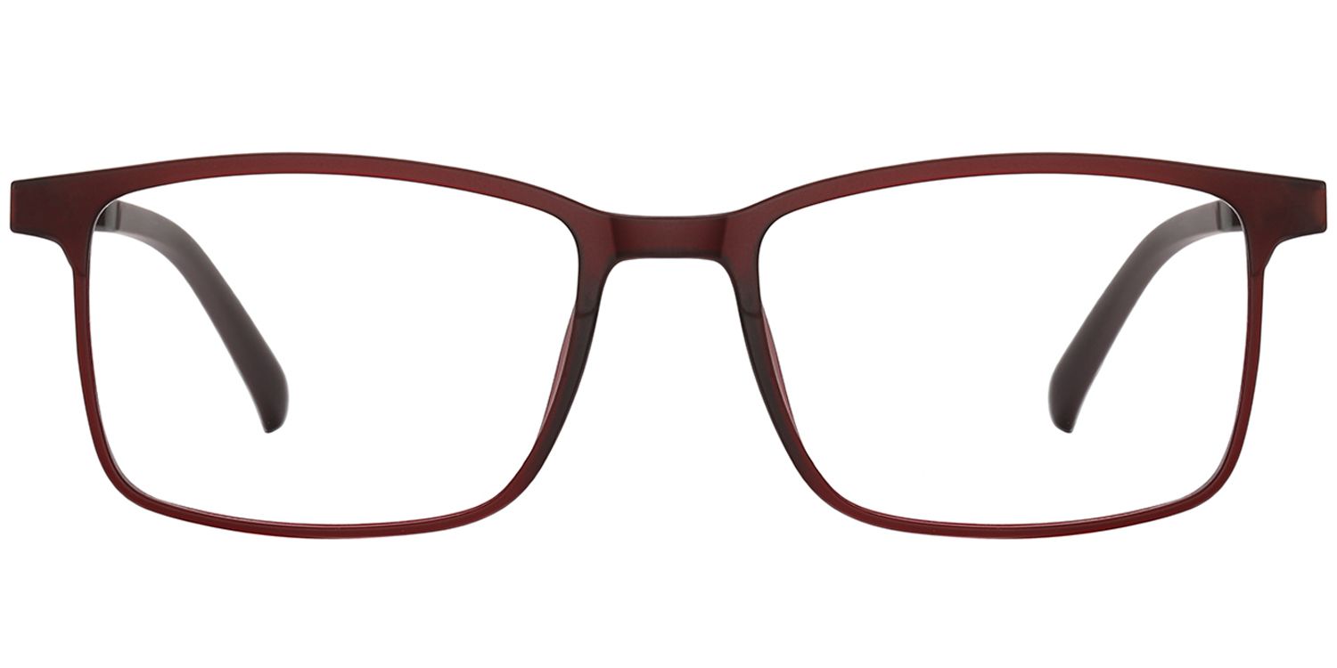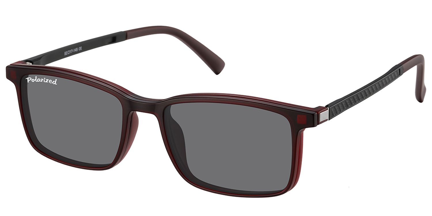 Optical frame in matt red finishing, suitable for magnetic clip-on in identical colour, with polarized sun lenses.