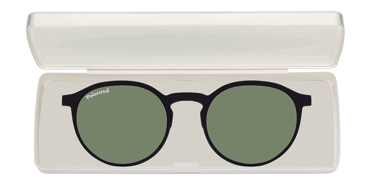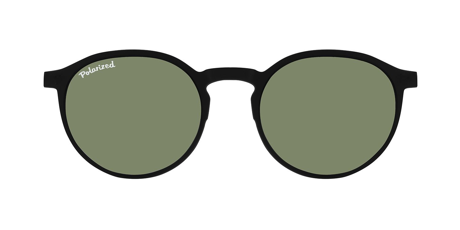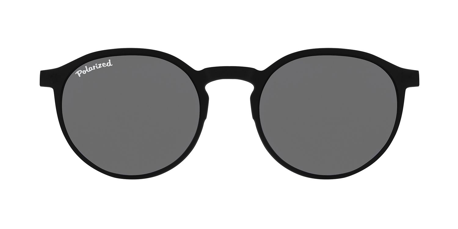 Optical frame in matt black finishing, suitable for magnetic clip-on in identical colour, with polarized sun lenses.