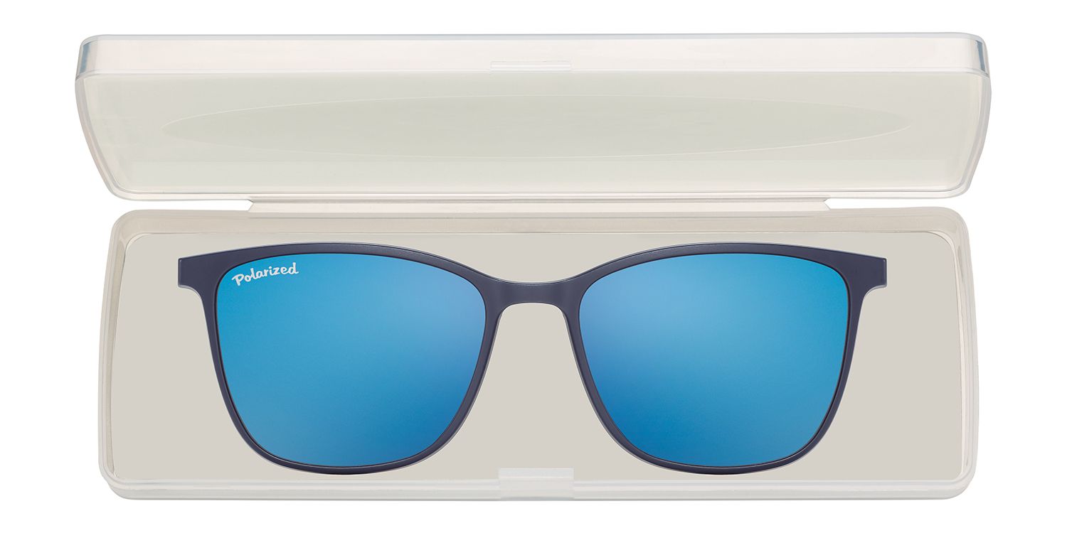 Optical frame in matt blue finishing, suitable for magnetic clip-on in identical colour, with polarized sun lenses.