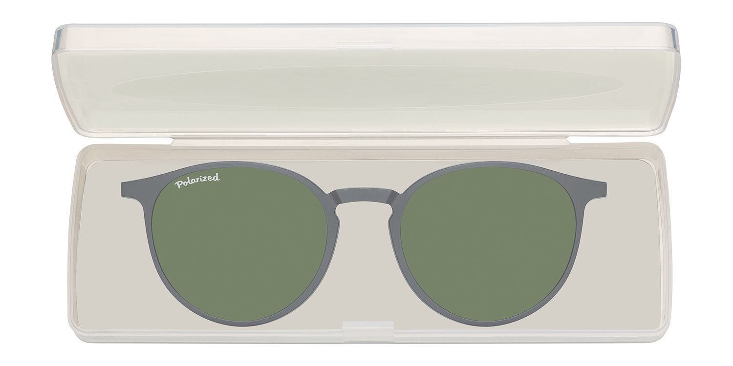 Optical frame in matt grey finishing, suitable for magnetic clip-on in identical colour, with polarized sun lenses.