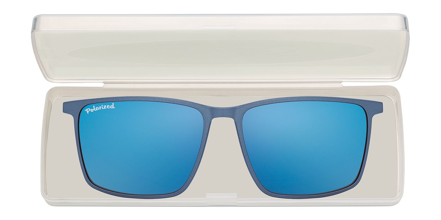 Optical frame in matt blue finishing, suitable for magnetic clip-on in identical colour, with polarized sun lenses.