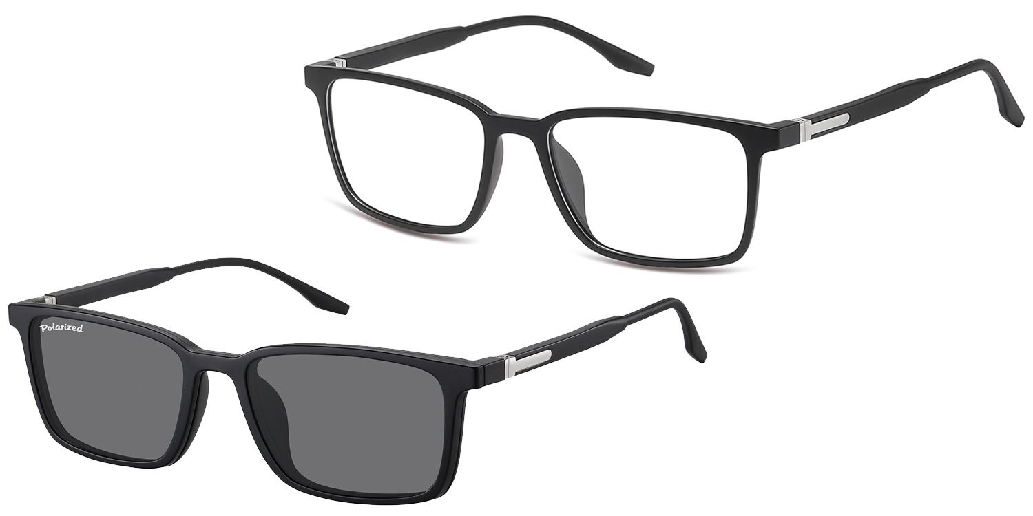 Optical frame in matt black finishing, suitable for magnetic clip-on in identical colour, with polarized sun lenses.