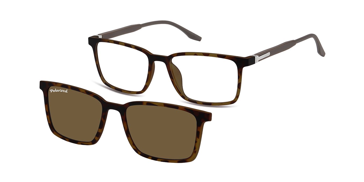 Optical frame with in matt turtle finishing, suitable for magnetic clip-on in identical colour, with polarized sun lenses.