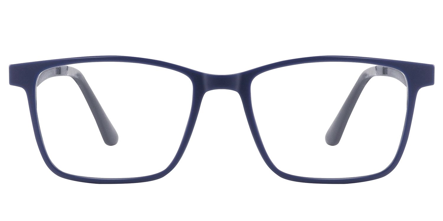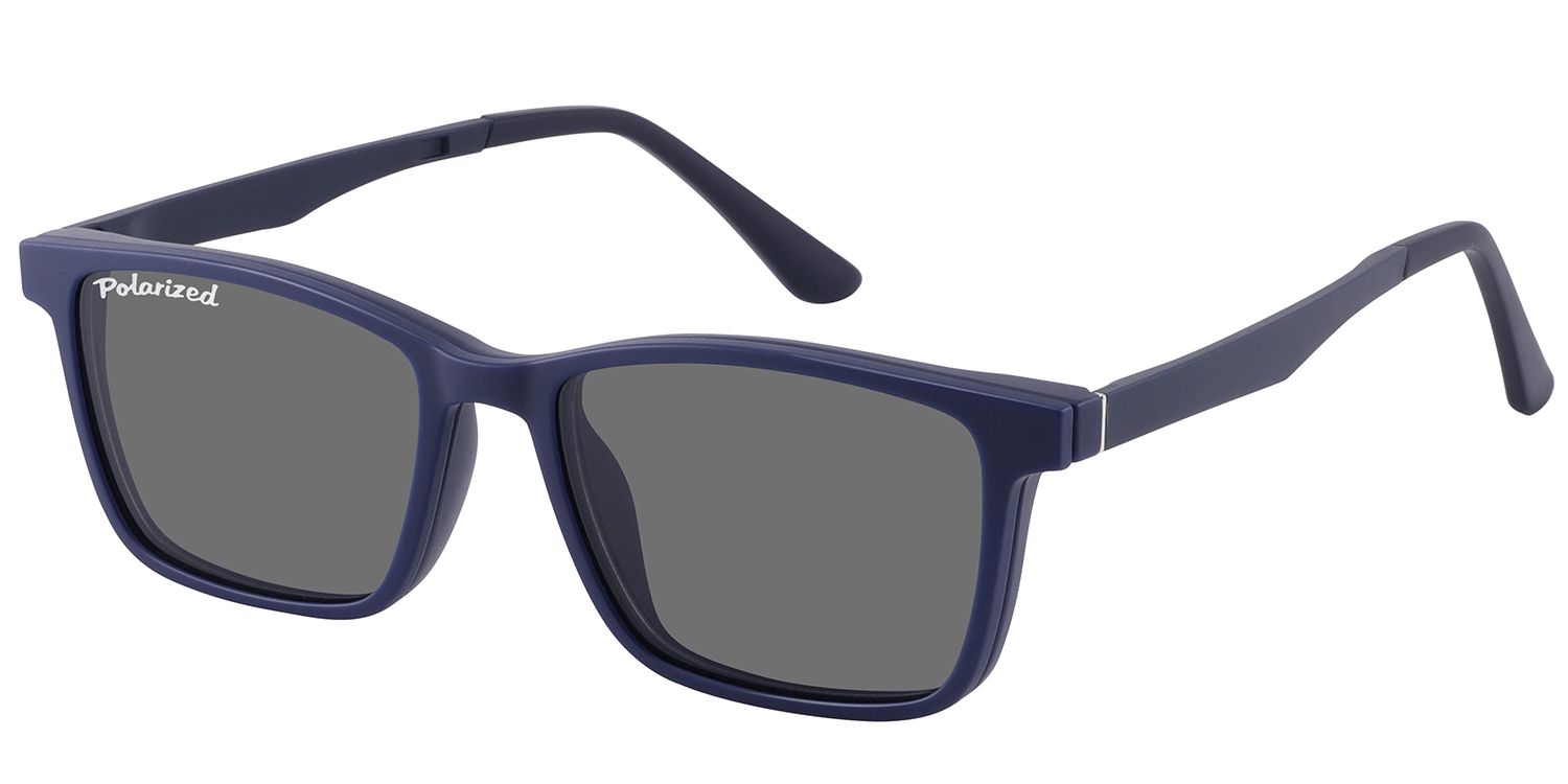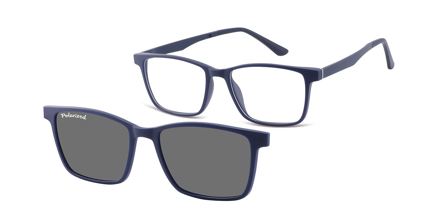 Optical frame in matt blue finishing, suitable for magnetic clip-on in identical colour, with polarized sun lenses.