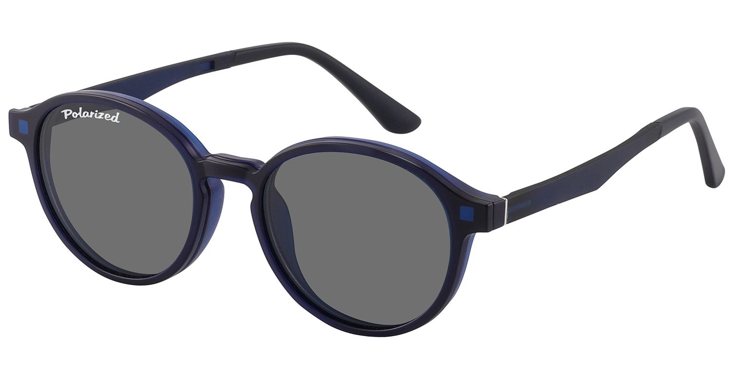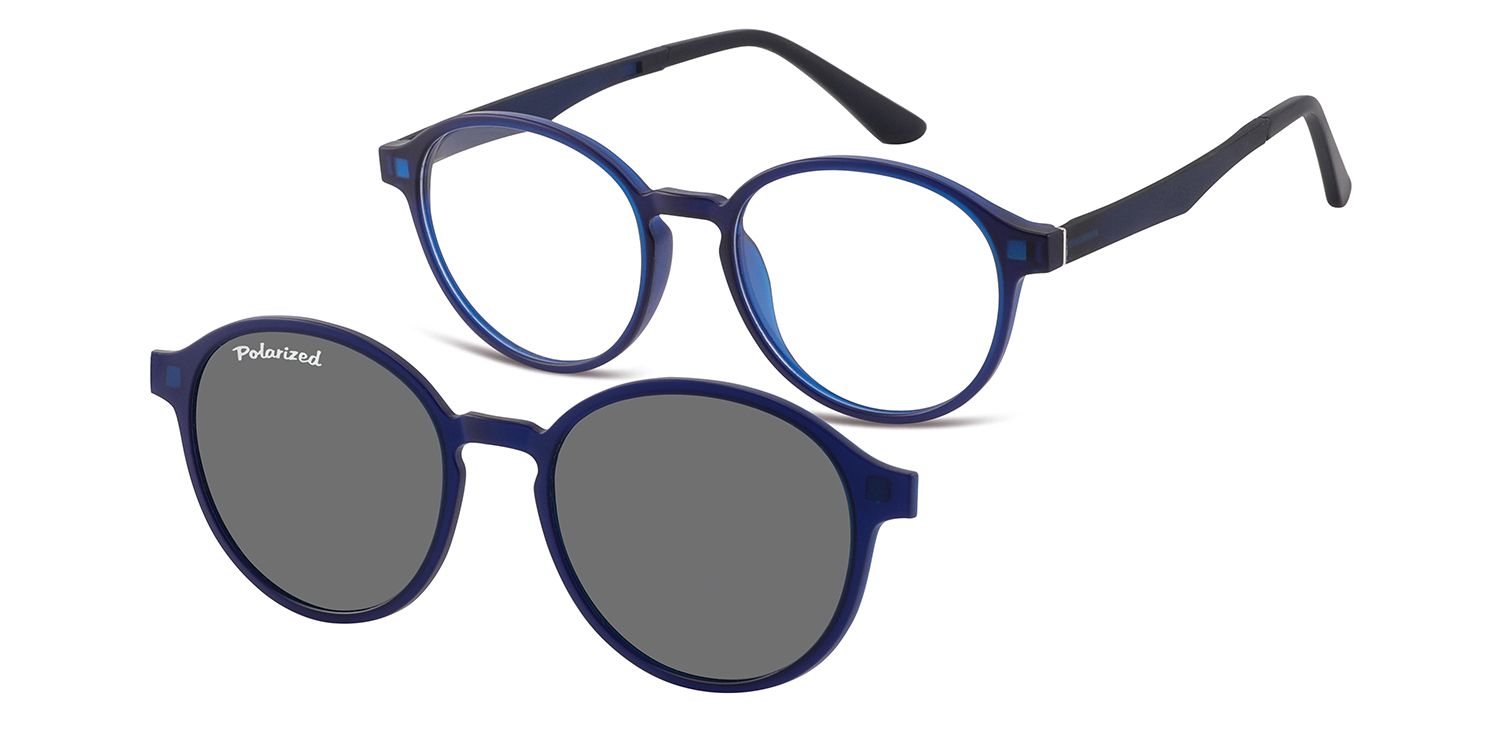 Optical frame in matt blue finishing, suitable for magnetic clip-on in identical colour, with polarized sun lenses.