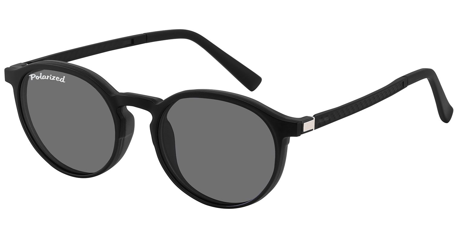 Optical frame in matt black finishing, suitable for magnetic clip-on in identical colour, with polarized sun lenses.